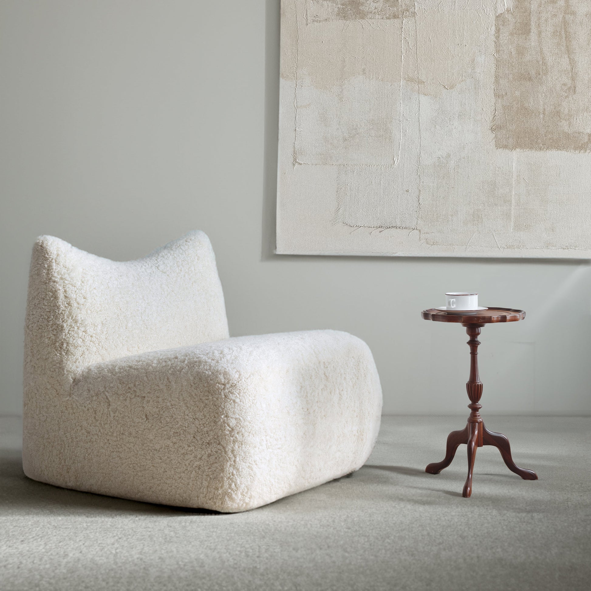 The sofa features a sturdy metal frame and springs instead of wooden parts, providing unparalleled bouncy and supportive feedback. Additionally, it is upholstered with 8 pieces of genuine Australia sheepskin.